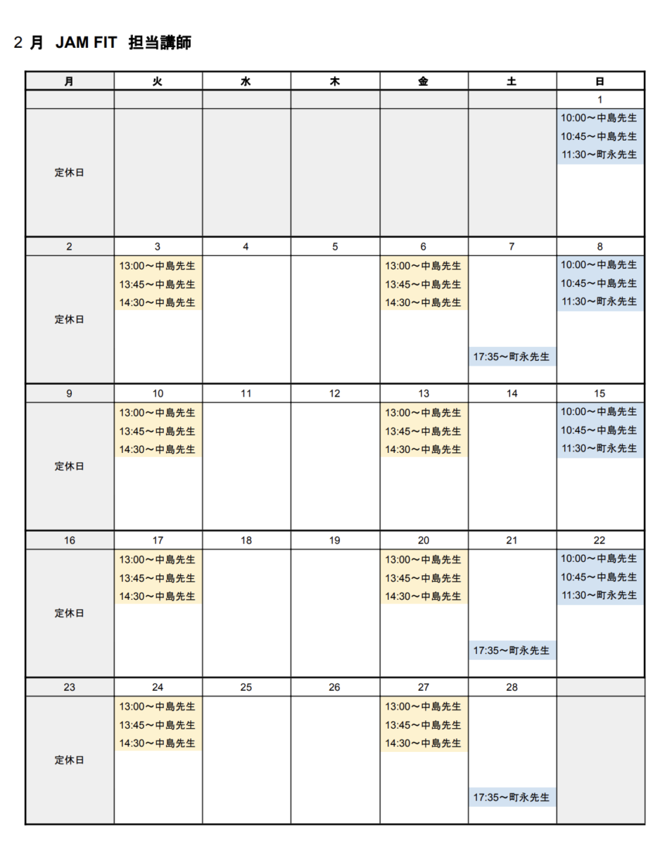 JAM FIT カレンダー
